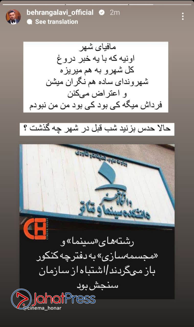 استوری قابل تامل بهرنگ علوی و نقش مافیای شهر!