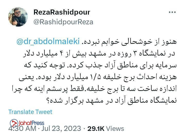 آقای رشیدپور که فرق بین تفاهمنامه با جذب سرمایه را نمیداند، در توییتر به اظهار نظر در مورد این مسائل پرداخت.
