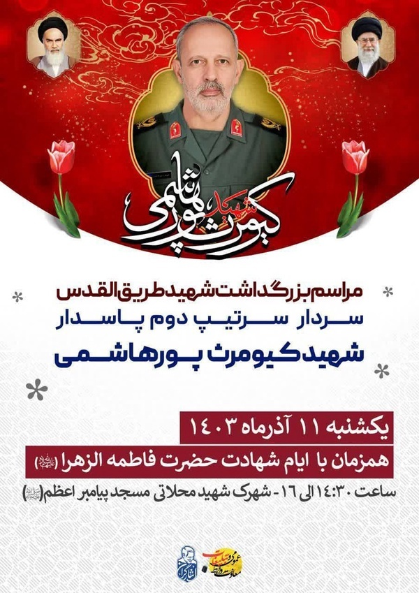 مجلس گرامیداشت شهید القدس سردار شهید کیومرث پورهاشمی امروز برگزار میشود.