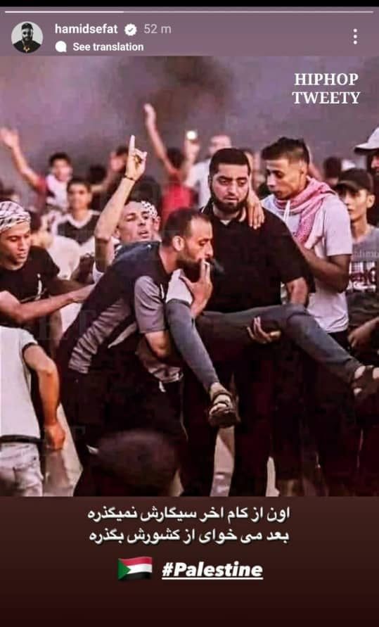 حمید صفت، خواننده جوان کشورمان با انتشار یک استوری از مقاومت مردم فلسطین برای حفظ سرزمین مادریشان حمایت کرد.