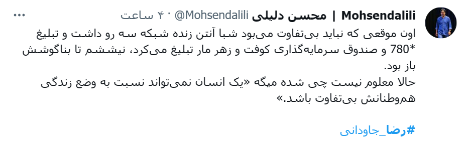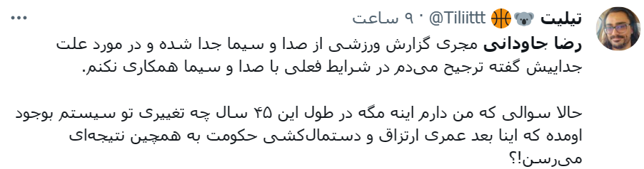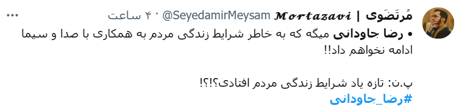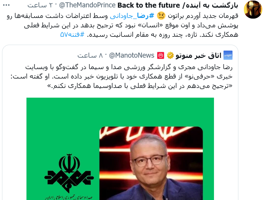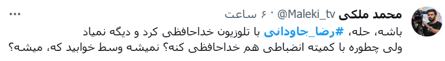 رضا جاودانی گزارشگر فوتبال در آستانه سالگرد اغتشاشات اعلام کرد که با تلویزیون قطع همکاری کرده است!