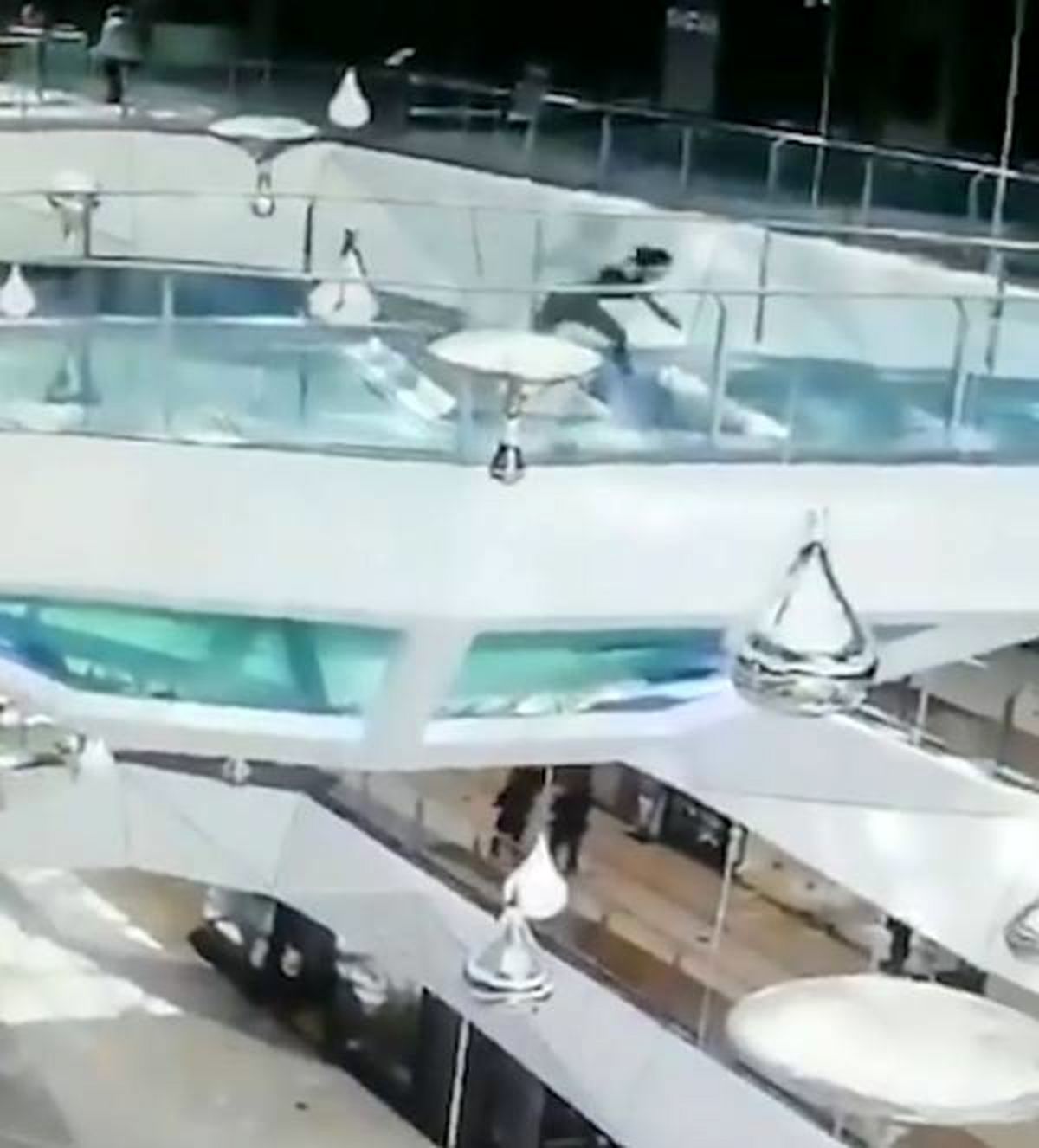 در یک مرکز خرید واقع در شرق چین که دارای آکواریوم کوسه لیمویی است زن جوانی که در حال عبور از روی آن بود ناگهان به داخل آکواریوم افتاد.