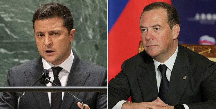 مدودف در گفتگوی کوتاه با خبرنگار شبکه «ریانووستی» گفت زلنسکی یا در دادگاه محاکمه خواهد شد یا باید به نقشهای فرعی در کمدیهای غربی بگریزد.