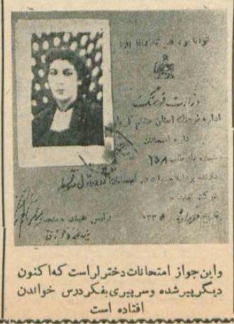 هنگامی که در سالن جلسهی امتحان سوم متوسطه قدم میزدم متوجه چهرهای فرسوده و نگران شدم که در عین کهولت و شکستگی حاضر به دادن امتحان شده است، با خود گفتم که این زن کیست و گرفتن گواهینامهی سوم متوسطه به چه درد او میخورد. یکی از مراقبین زن آهسته به من گفت: «او را میشناسی؟» گفتم: «نه» گفت: «این دختر لر است»!