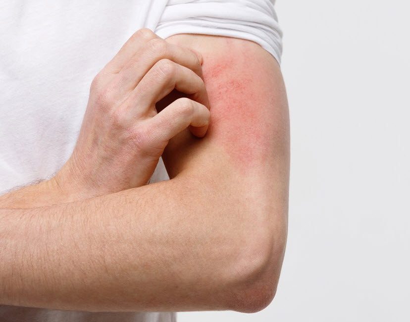 خارش پوست که به صورت لکه های قرمز, خارش زا ظاهر می شود و عمدتاً بر دست ها و پاها تاثیر می گذارد.