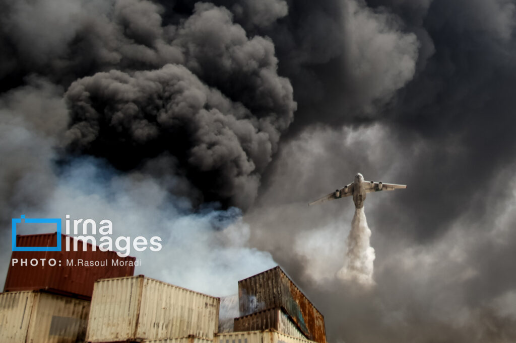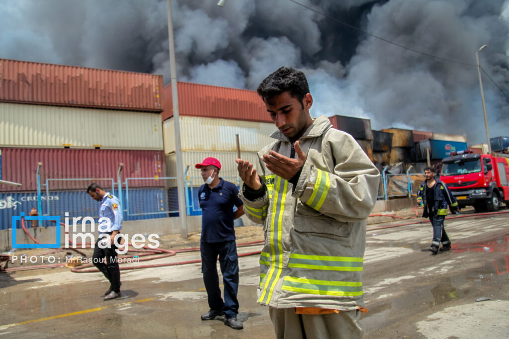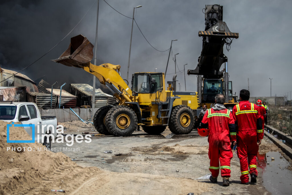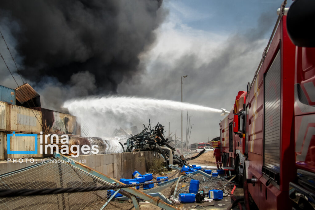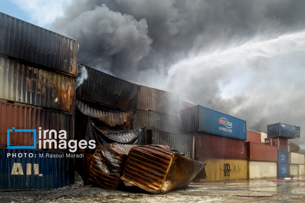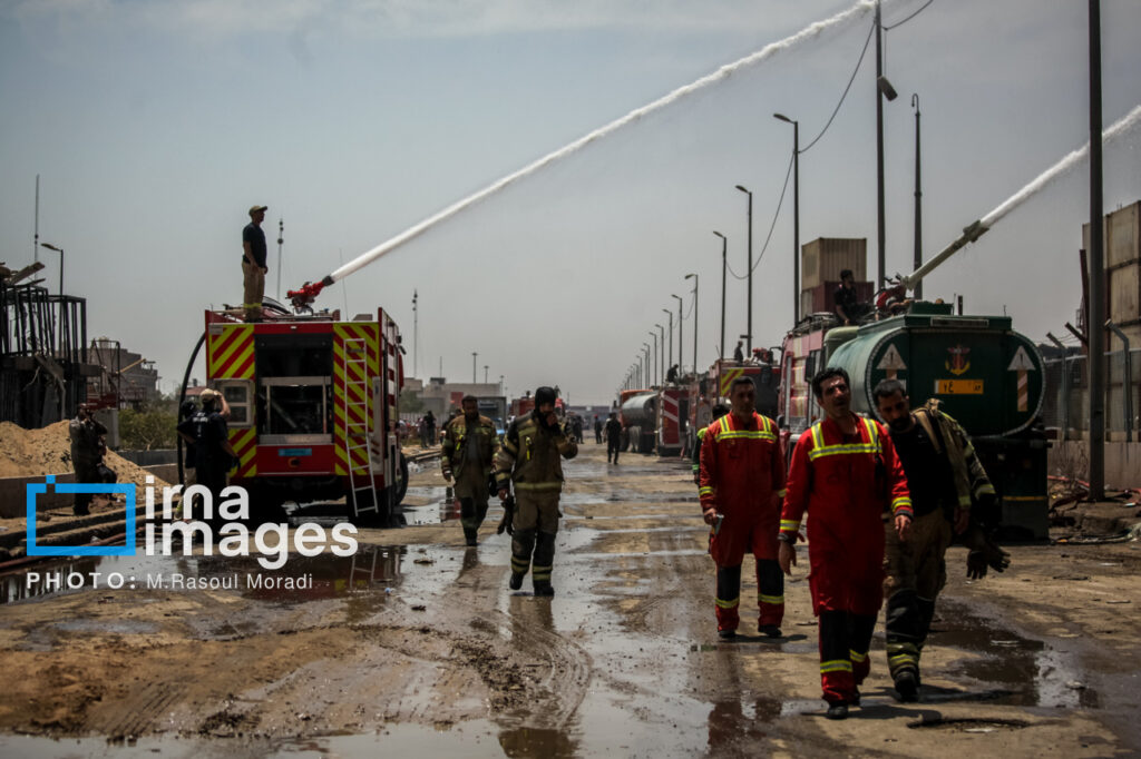 عکس/دومین روز مهار آتش سوزی بندر شهید رجایی