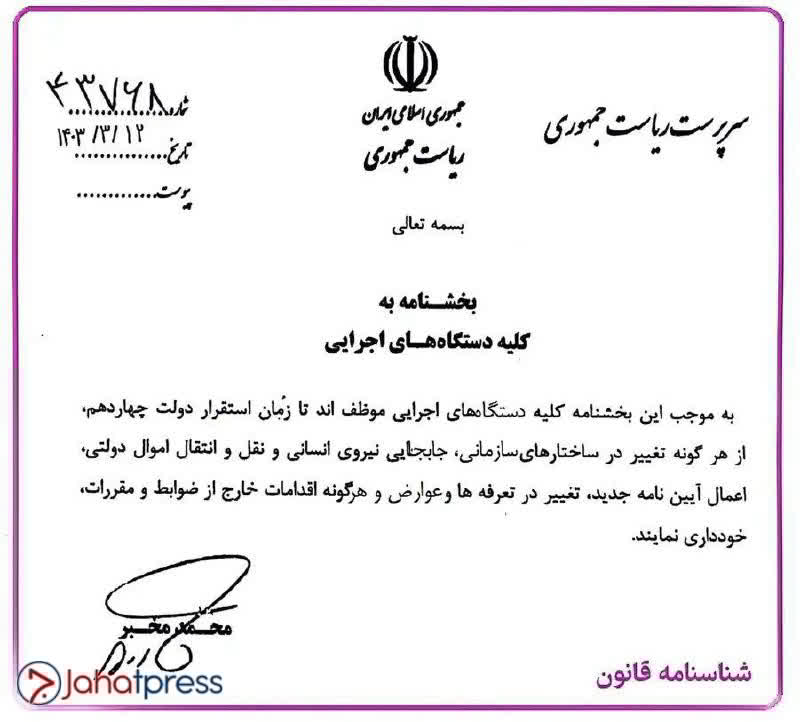 این در حالی است که محمد مخبر بیش از یک ماه پیش در ۱۳ خرداد ۱۴۰۳ و پیش از برگزاری انتخابات همین دستورات را به دستگاههای دولتی ابلاغ کرده بود.