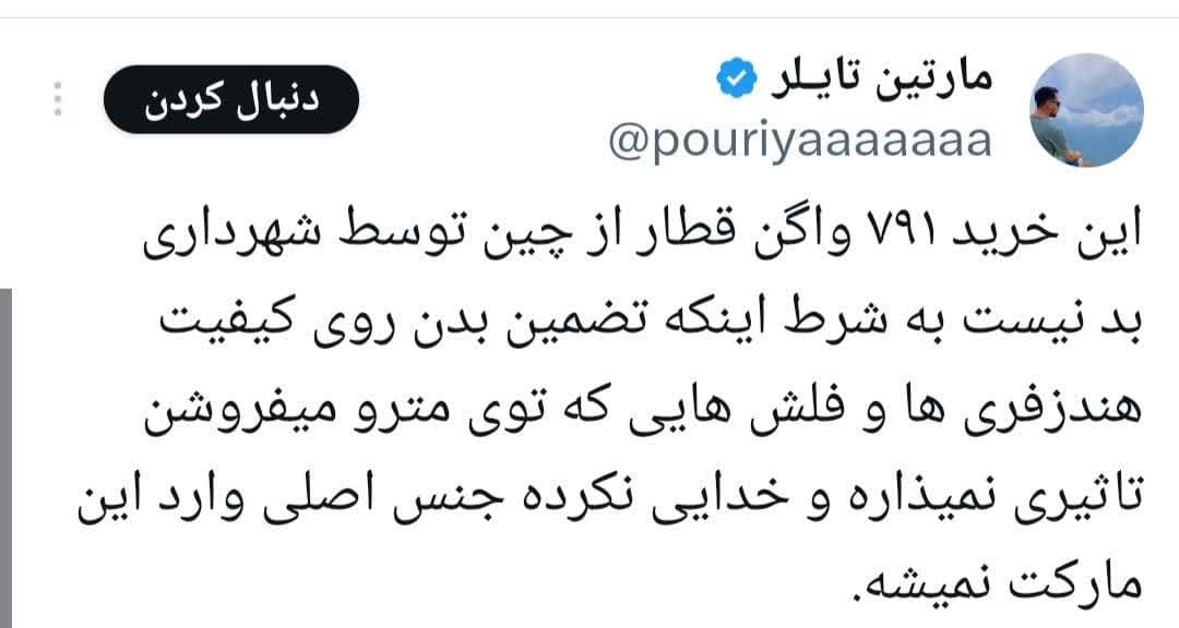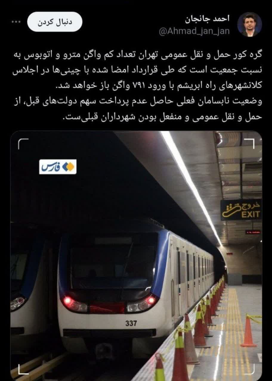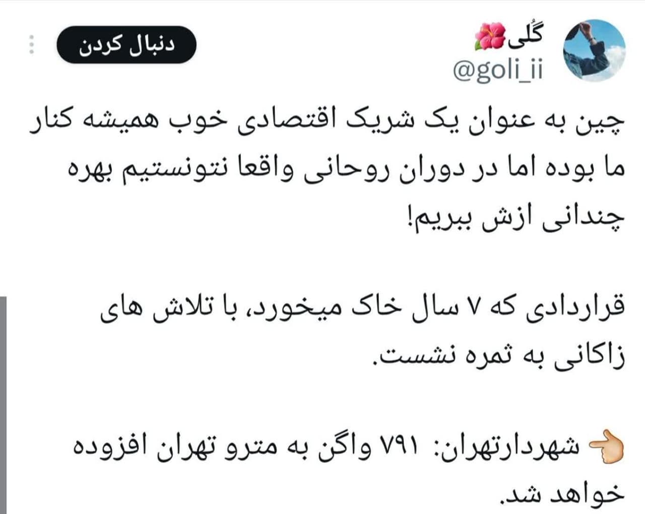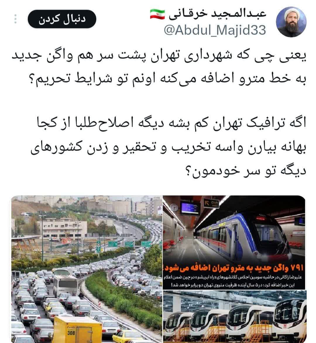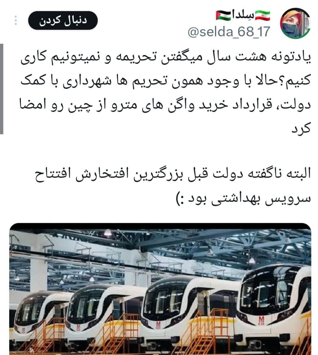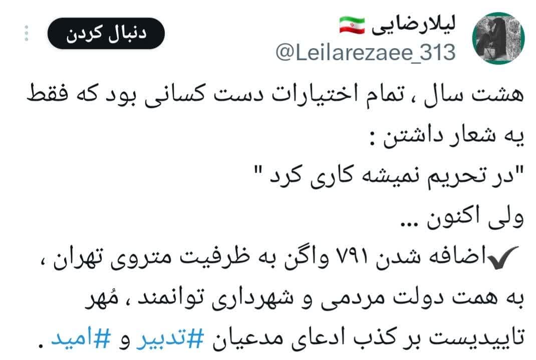«بعد از ۷ سال انتظار، قطارهای مترو تهران 2 برابر میشود و اولین سری قرارداد ۷۹۱ واگن مترو سال آینده به پایتخت میرسد»، این خبری است که در رسانهها منتشرشد و کاربران توییتر به آن واکنش نشان دادند.