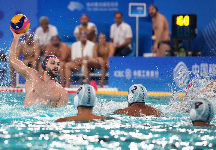 از هانگژو، تیم ملی واترپلو ایران در دومین بازی خود در مسابقات بازیهای آسیایی به مصاف تایلند رفت و در یک بازی برتر و یکطرفه با نتیجه پرگل ۲۶ بر ۷ حریف خود را شکست داد.