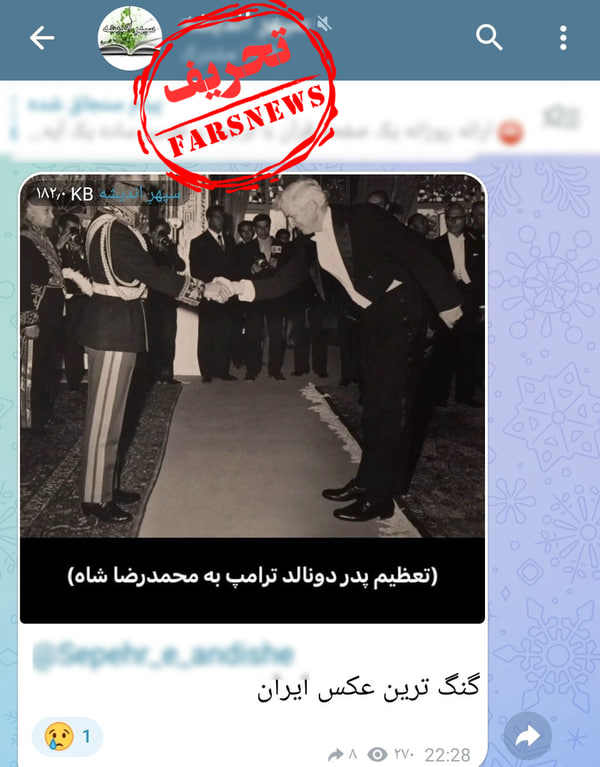 به گزارش جهت پرس؛ از شایعه تا واقعیت: همزمان با مذاکرات بین ایران و آمریکا، تصویری قدیمی با تیتر «تعظیم پدر دونالد ترامپ در برابر شاه ایران» در شبکه های اجتماعی منتشر شده است که در آن فردی در حال دست دادن با شاه، به حالت تعظیم کمی به جلو خم شده است.