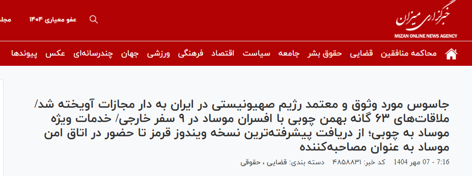 بهمن چوبی اصل یک متخصص حوزه دیتاسنتر(مخزن اطلاعات) امروز به جرم جاسوسی برای رژیم صهیونیستی اعدام شد!