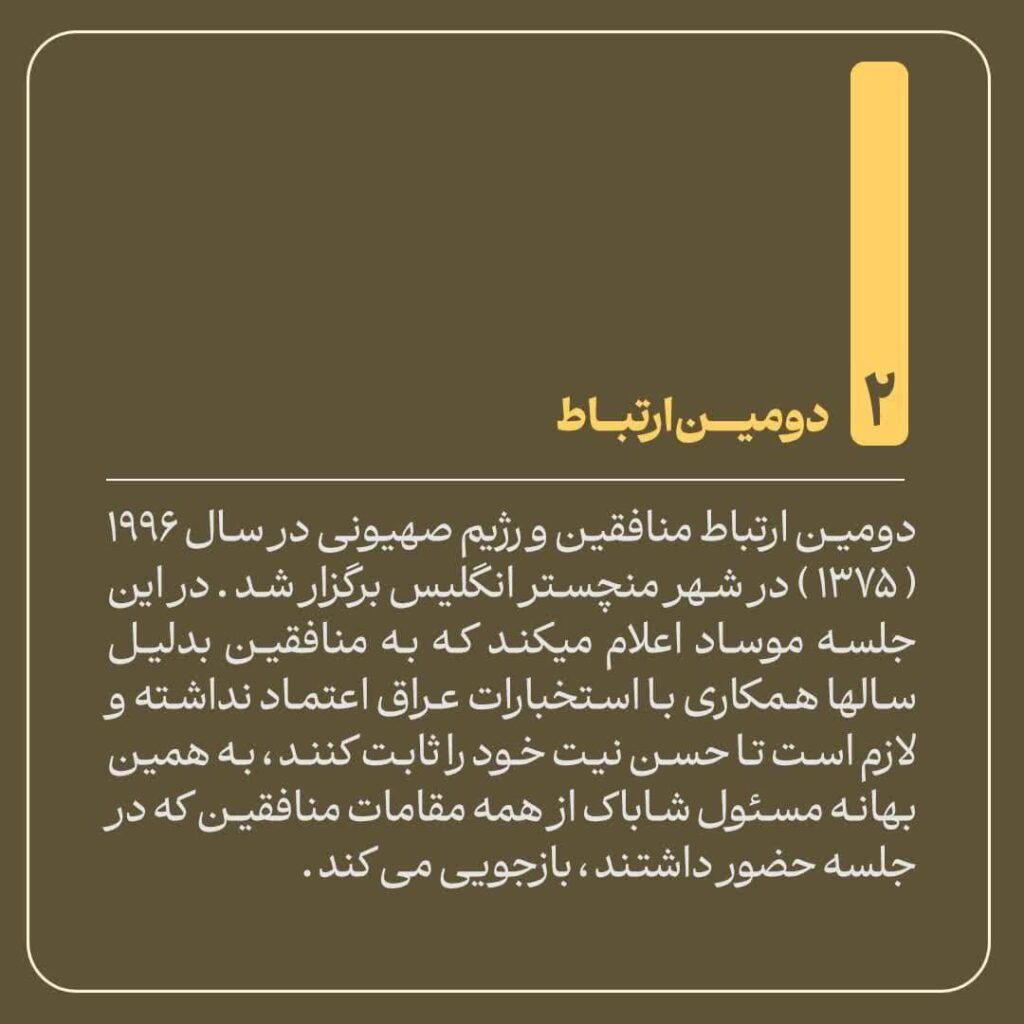 افشای اسناد جدید نشان میدهد منافقین سالها پیش با رژیم صهیونیستی و دستگاههای امنیتی غربی وارد همکاری شدهاند؛ از نشستهای محرمانه در ولز و منچستر گرفته تا دیدار با مقام امنیتی آمریکا در سال ۲۰۰۲ که سرآغاز پیوند رسمی این گروهک با موساد شد.