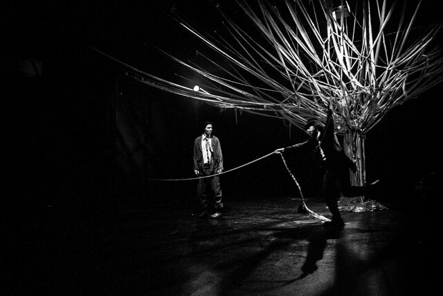 استراگون و ولادیمیر به انتظار گودو نشستهاند.»