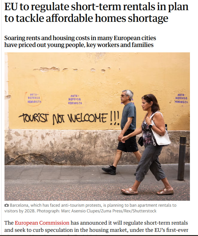 گاردین در گزارشی هشدار داد که دموکراسی در اروپا بخاطر بحران مسکن سقوط میکند چون قیمت بالا مسکن به رشد افراطی گرایی در اروپا میانجامد، برای همین علیه پلتفرمهای اجاره وارد جنگ میشود.