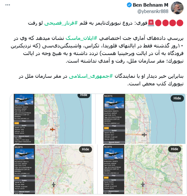 دیدار ایلان ماسک با مقام ایرانی در نیویورک: این خبر نیویورک تایمز توسط کاربران شبکههای اجتماعی و مسیر پرواز جت ایلان ماسک مورد پیگیری قرار گرفت و مشخص شد که وی در 10 روز گذشته قبل از انتشار این خبر در نیویورک نبوده و در ایالتهایی مانند تگزاس و فلوریدا تردد داشته و همین موضوع باعث تمسخر خبرنگار ایرانیتبار این رسانه آمریکایی شد. عراقچی نیز این موضوع را تکذیب و آنرا دارای اهداف پشت پرده خواند. ضمن اینکه مسئله مذاکره ایران آمریکا نیز با نامهنگاری ترامپ و میانجریگری عمان صورت گرفت؛ وگرنه ایران نسبت به مذاکره با کسی که از برجام خارج شده ذهنیت مثبتی ندارد.
