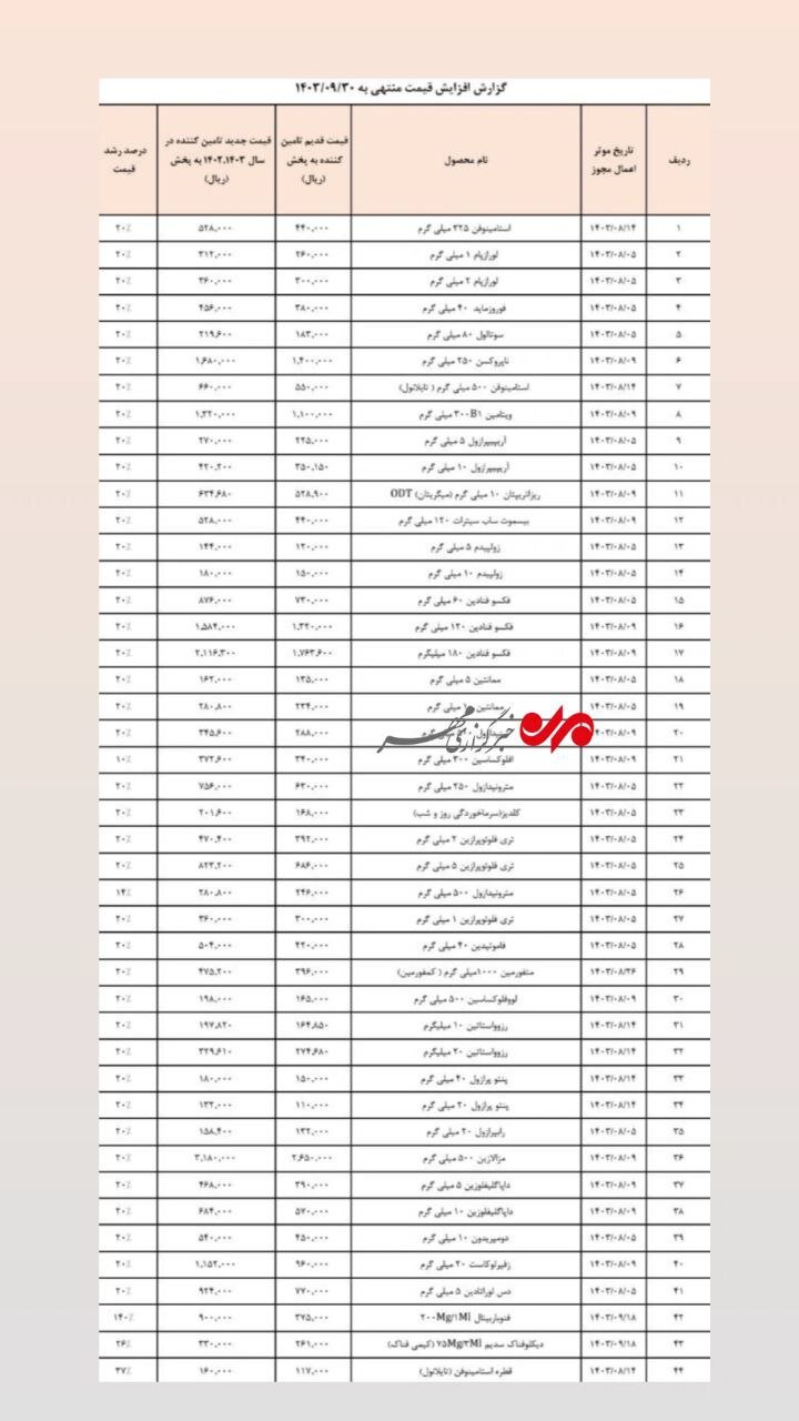 در همین حال، مهدی پیرصالحی رئیس سازمان غذا و دارو، در واکنش به بازار دارویی کشور و افزایش قیمت داروها، گفت: در مرحله نخست، از مجموع حدود ۳,۸۰۰ قلم دارو، قیمت ۳۷۰ قلم افزایش یافته است. به عنوان مثال، برخی آمپولها که قبلاً ۵ یا ۶ هزار تومان قیمت داشتند، اکنون به ۱۹ هزار تومان رسیدهاند. اگرچه درصد افزایش قیمت به ظاهر بالا به نظر میرسد، اما در مقایسه با تورم کشور، رقم مطلق آن چندان بالا نیست.وی افزود: از ابتدای سال تاکنون، میانگین افزایش قیمت دارو کمتر از ۳۰ درصد بوده است که نسبت به نرخ تورم، عدد معقولی محسوب میشود.