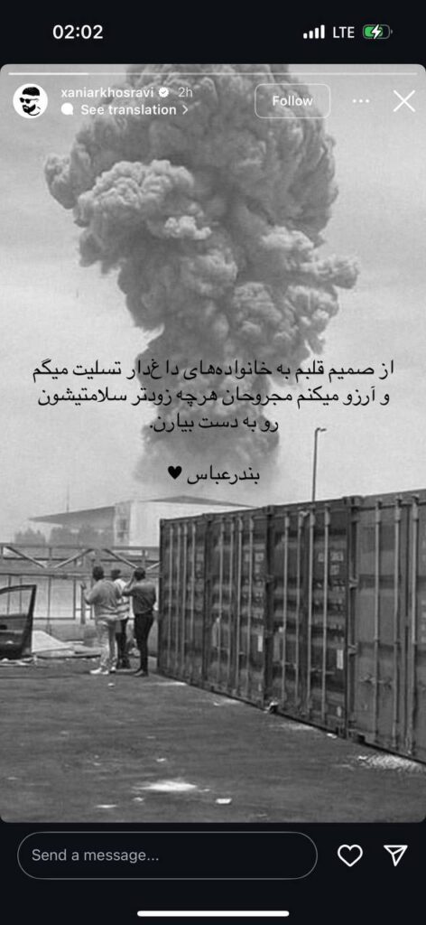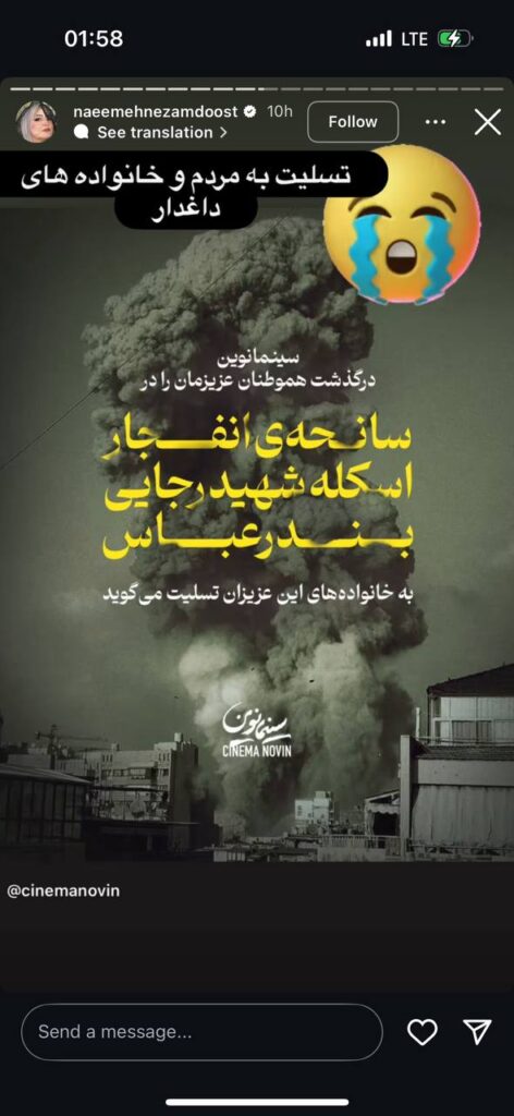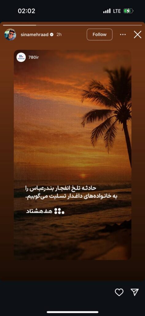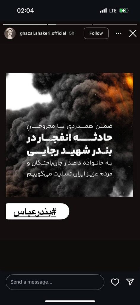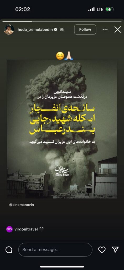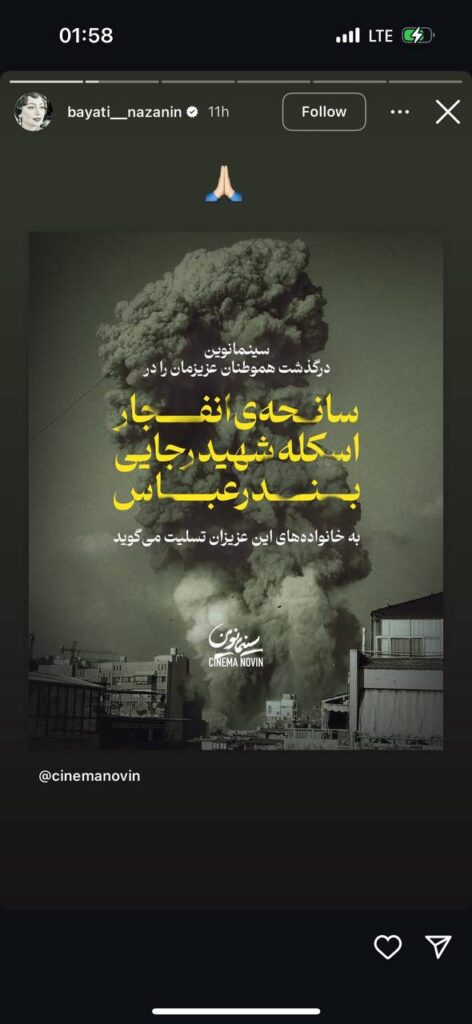 به گزارش جهت پرس؛ واکنش هنرمندان به حادثه انفجار بندر شهید رجایی در پی حادثه انفجار در بندر شهید رجایی بندرعباس، شماری از هنرمندان و بازیگران با انتشار پیامها و استوریهایی در فضای مجازی، نسبت به این اتفاق تلخ ابراز همدردی کردند.
