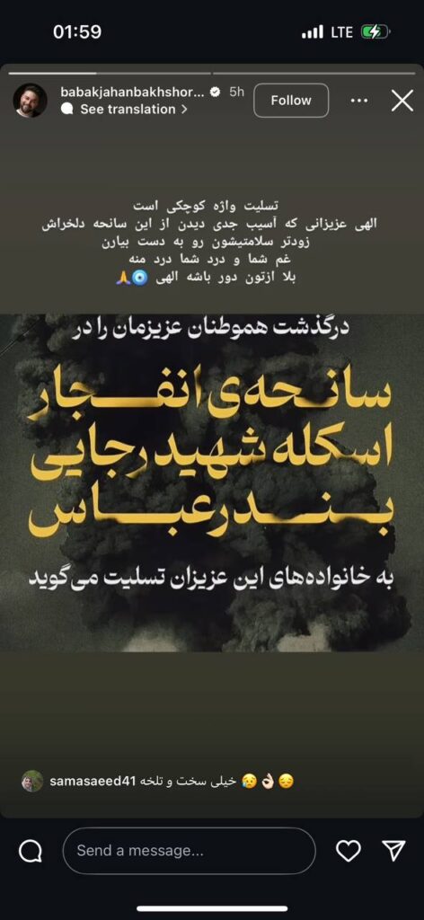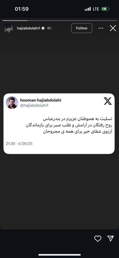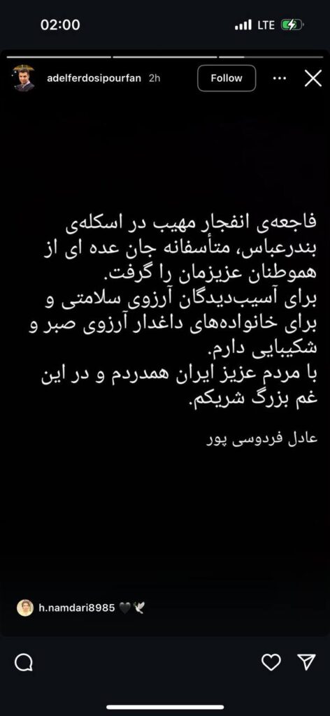واکنش گسترده هنرمندان به حادثه دلخراش بندرعباس