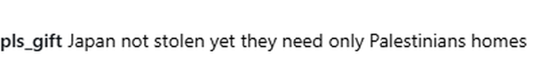 کاربر دیگری نوشته که در ژاپن، حداقل دزدی صورت نگرفت؛ اما اسرائیلیها حتی به دزدی از منازل فلسطینیها هم دست زدند.