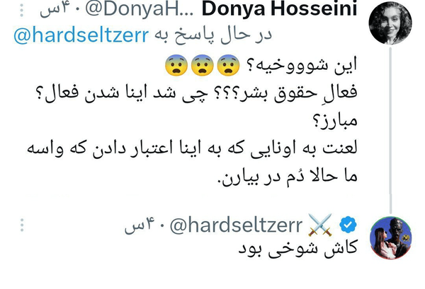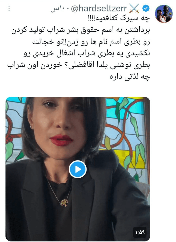 کاربر دیگری نوشته است: «چه سیرک کثافتیه!!!! برداشتن به اسم حقوق بشر شراب تولید کردن رو بطری اسم نامها رو زدن!!تو خجالت نکشیدی یه بطری شراب اشغال خریدی رو بطری نوشتی یلدا اقافضلی؟ خوردن اون شراب چه لذتی داره»